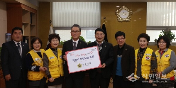 인천 중구의회는 지난 31일 의장실에서 김철홍 의장을 비롯한 의원들과 황규철 대한적십자사 인천지사 회장 등이 참석한 가운데 '2017년 적십자특별회비'를 전달했다.(사진제공=중구의회)
