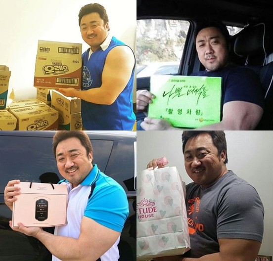 마동석은 자신의 인스타그램을 통해 선물 인증샷 사진을 여러장 공개해 눈길을 끌었다.