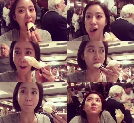 배우 전혜빈의 익살스러운 먹방 영상이 화제다.