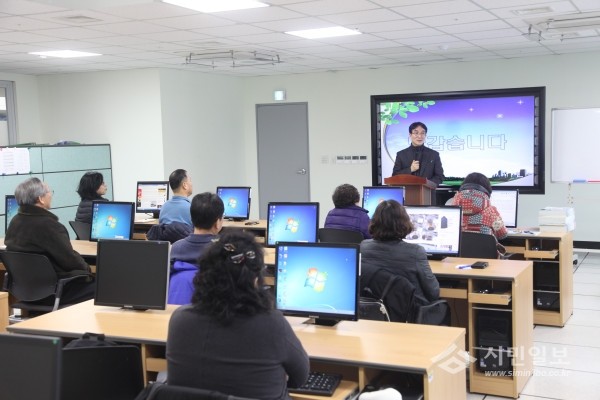 경기 수원시 팔달구는 지난 1일 구청 정보화교육장에서 ‘2017년 시민정보화교육 개강식’을 가졌다. 사진은 개강식에 참여한 김창범 구청장이 참여자들에게 인사말을 하는 모습.(사진제공=팔달구청)