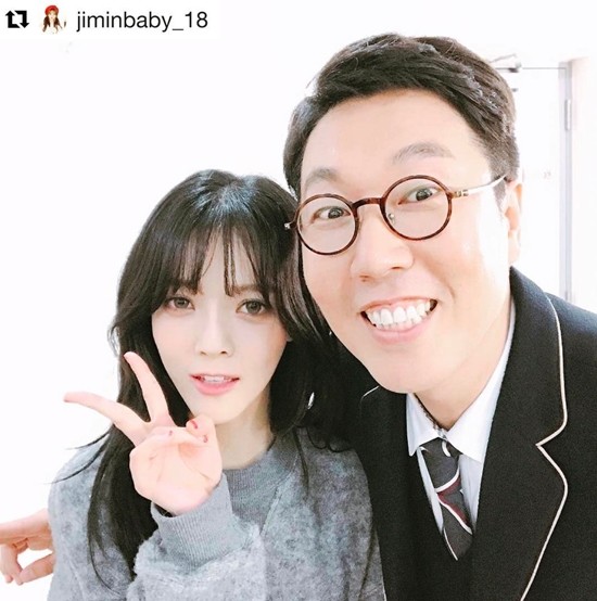 개그맨 김영철이 '아는 형님'에 출연한 AOA지민과 찍은 사진을 공개했다.