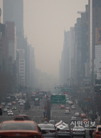 절기상 입춘인 4일 오전 서울 강남대로에서 바라본 강남지역이 희뿌옇게 보이고 있다. 이날 서울을 비롯한 수도권 미세먼지 농도는 '나쁨' 수준을 보이고 있다.