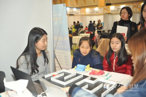 최근 노원구는 구청 대강당에서 초·중학생에 맞는 진로진학정보를 제공하기 위해 서울여대와 함께 ‘중학교 자유학기제 지원 꿈수(SWU)레 전공체험’ 박람회를 실시했다. 사진은 체험에 참가한 학생들의 모습.(사진제공=노원구청)