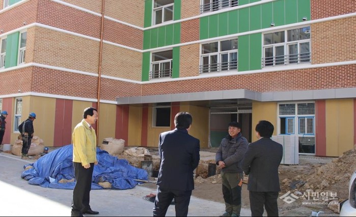 지난 2일 전남 여수교육지원청 최성수 교육장은 오는 3월1일자 개원 예정인 '송현유치원' 공사현장을 방문해 마무리 공사 중인 현장 관계자를 격려했다. 사진은 최 교육장(왼쪽)이 관계자들과 이야기를 나누는 모습.(사진제공=여수교육지원청)