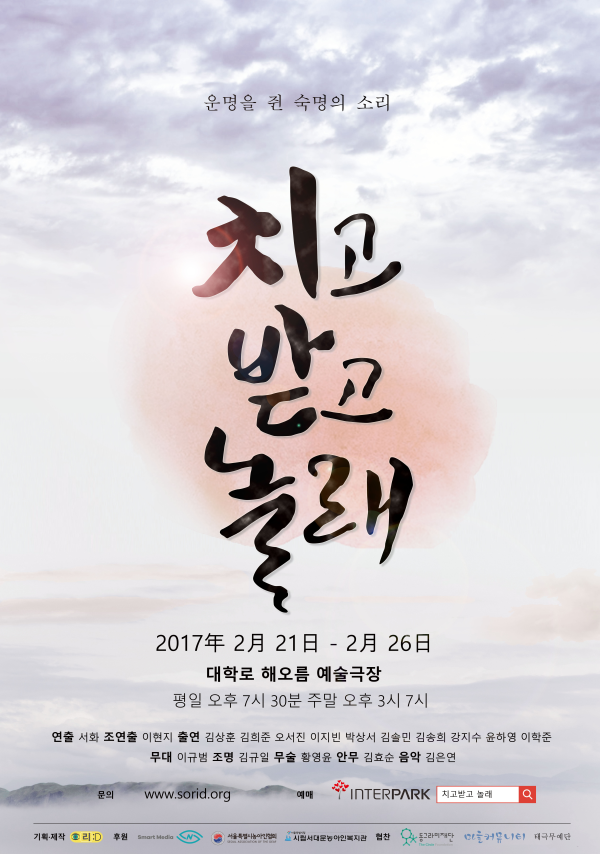 창작연극 ‘치고받고 놀래’의 3차 공연은 2017년 2월 21일부터 26일까지 대학로 해오름 예술극장에서 진행된다. 공연시간은 총 100분으로 티켓의 정가는 3만원이다. 티켓예매는 인터파크를 통해 가능하다. 공연에 대한 보다 자세한 사항은 소리디 블로그와 ‘치고받고 놀래’ 공연 카페를 통해 확인할 수 있다.