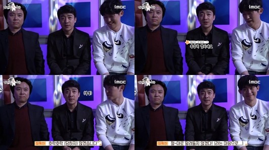이들은 저마다 자신을 소개하며 ‘라디오 스타’에 출연하게 된 소감을 전했다. 특히 장혁진은 “굉장히 떨리네요”라며 “호락호락 (당하지) 않겠습니다 절대로 말려들지 않겠다”라고 말해 웃음을 자아냈다.