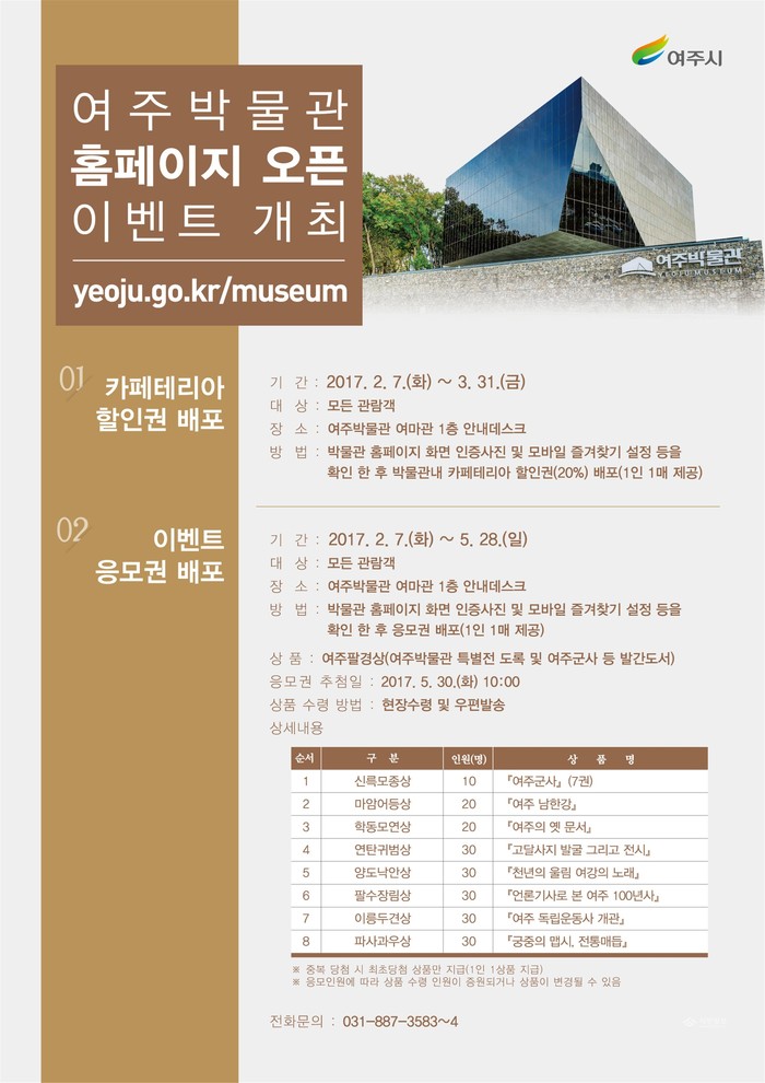 박물관은 이벤트에 참여한 모든 관람객에게 1인 1장씩 이벤트 응모권을 배포하고, 오는 3월31일까지 참여한 관람객에게는 추가로 박물관내 카페테리아 할인권(20% 할인, 오는 3월31일까지 사용가능)을 배포할 예정이다.