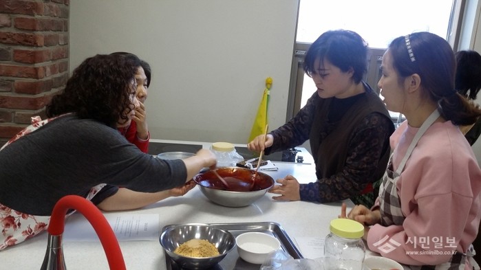 최근 인천 연수구 송도보건지소는 가정에서부터 저염·저당식생활 실천을 위해 주민 96명을 대상으로 '장 담그기 무료강좌'를 시작했다. 사진은 참여자들이 고추장을 담그며 이야기를 나누는 모습.(사진제공=연수구청)