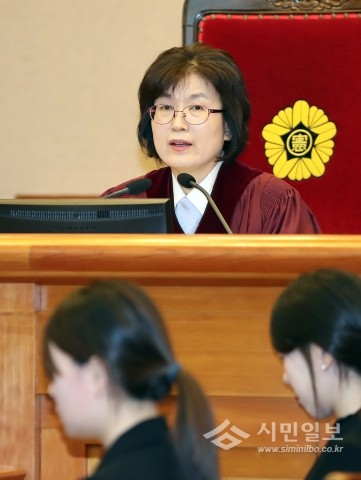 | ▲ 이정미 헌법재판소장 권한대행이 9일 오전 서울 종로구 재동 헌법재판소에서 열린 박근혜 대통령 탄핵심판 사건 12차 변론에서 출석인들을 확인하고 있다.(사진제공=연합뉴스) | ||
