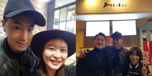 최근 심진화의 남편 개그맨 김원효의 SNS에는 윤노윤호와 찍은 셀카 사진을 여러장 공개해 눈길을 끌었다.