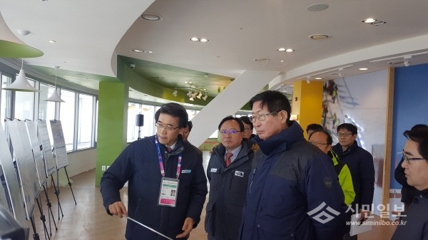 이날 조환익 사장은 설상경기가 열리는 평창 스키점프대에서 경기장별 전력공급에 대한 계획 및 공정률을 점검했다.