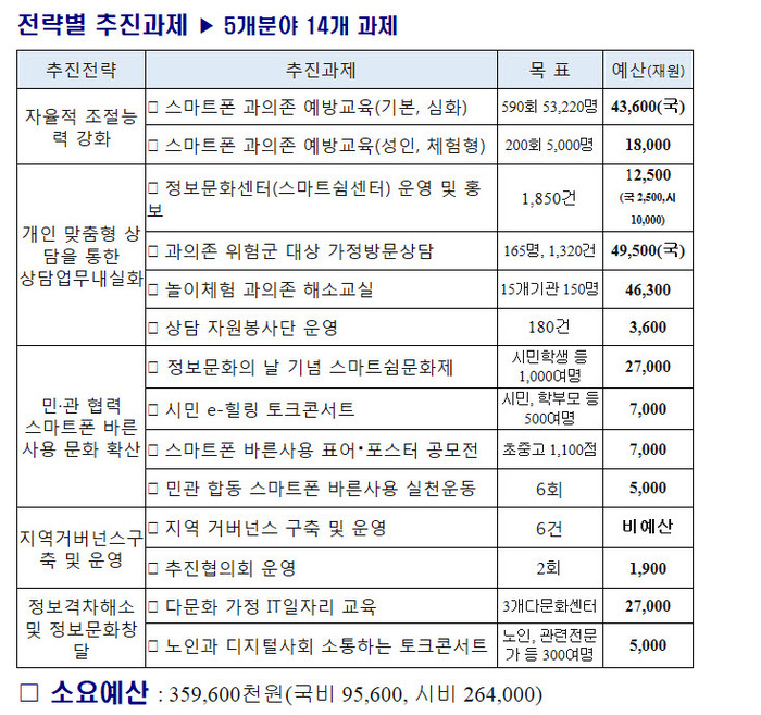 아울러 시민중심 스마트폰 자율예방 활동 붐 조성을 위해 '민·관·학 협력 스마트폰 바른사용 실천 운동'도 지속적으로 펼칠 예정이다.