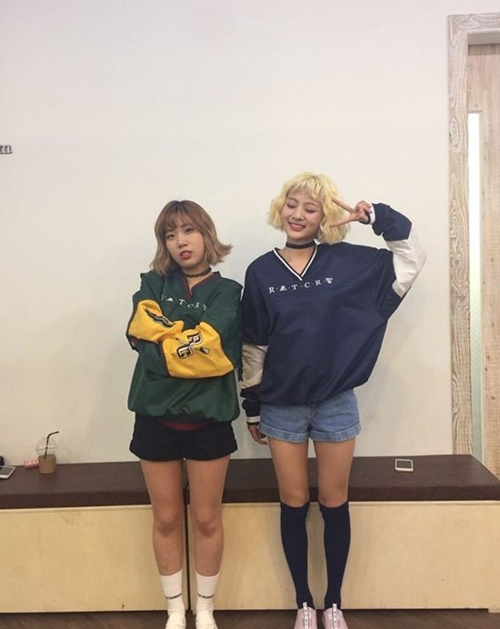 공개된 사진속에는 안지영이 우지윤과 같은 로고가 쓰여있는 상의를 입고 비슷한 반바지를 입은 채 캐주얼함을 드러냈다.