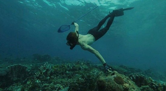 공개된 사진 속 그는 바다 속에서 수영을 하며 고기를 잡고 있는 모습이다.