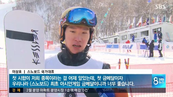 노보드 이상훈 선수가 한국 스노보드 사상 첫 아시안게임서 금메달을 획득했다.