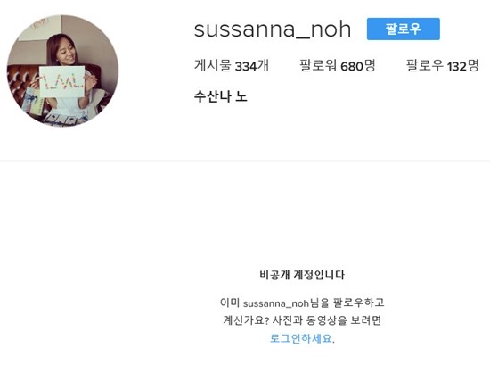 노수산나는 평소 SNS로 팬들과 활발하게 활동했지만 이날 열애설이 터지면서 갑작스레 SNS를 비공개로 전환했다.