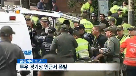 AP통신은 19(현지시간)일 콜롬비아 보고타 투우 경기장 인근에서 사제 폭탄이 터진 것으로 보도했다. 이에 따라 현장에 있던 경찰관 1명이 사망하고 최소 31명이 다친 것으로 전해졌다.