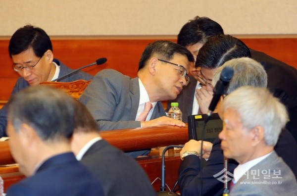 | ▲ 20일 오전 서울 종로구 재동 헌법재판소 대심판정에서 열린 '탄핵심판' 15차 변론에 참석한 이중환 변호사 등 대통령 측 변호인들이 상의를 하고 있다.(사진제공=연합뉴스) | ||
