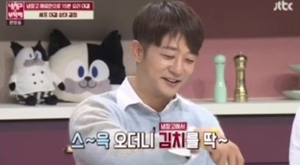그는 “티격태격 하고 뚱하니 앉아서 TV를 보고 있는데 배가 너무 고프더라. 고민하다가 고추기름에 해물을 볶아 해물라면을 끓였다”며 “뒤에서 인기척이 느껴지더라. 슥 오더니 냉장고 앞에서 김치를 담더라”고 당시 상황을 전했다.