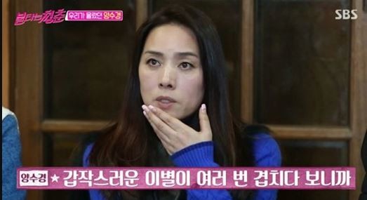 지난 21일 방송된 SBS 예능프로그램 '불타는 청춘'에 출연한 양수경은 자신의 지난 이야기를 진솔하게 털어놨다.