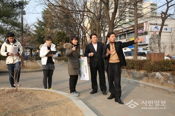 인천 계양구의회 자치도시위원회는 최근 시설물 노후 등으로 이용불편 민원요구사항이 지속적으로 요구돼 리모델링이 추진되고 있는 '작전어린이공원' 현장을 방문해 담당자에게 설명을 듣고 주민들의 힐링공원으로 거듭날 수 있도록 힘써달라고 당부했다. (사진제공=계양구의회)
