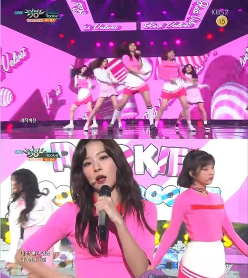 레드벨벳은 24일 생방송된 KBS2 ‘뮤직뱅크’에 1위 후보로 올라 무대에 올라 '루키’ 무대를 선보였다.