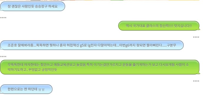 이날 방송에 대해 네티즌들은 " 역시 국가대표 클라스의 정신력 멋지십니다!!!""참 괜찮은 사람인듯 승승장구 하세요" " 꾸밈없고 긍정적인듯" "한편으로는 짠 하던데 ㅠㅠ" 등의 응원댓글을 남겼다.