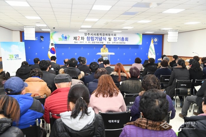 경기 양주시 사회적경제협의회는 최근 시청 대회의실에서 회원 70여명이 참석한 가운데 제2차 창립 기념식 및 정기총회를 개최했다. 사진은 이성호 양주시장이 발언하는 모습.(사진제공=양주시청)