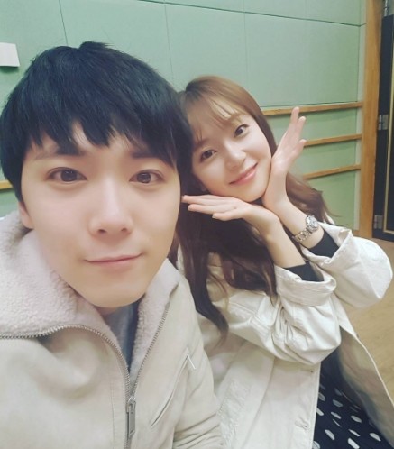 사진 속에는 이홍기가 진행하는 '키스더라디오' 라디오 부스 안에 백진희가 꽃받침 포즈를 취하고 있다.