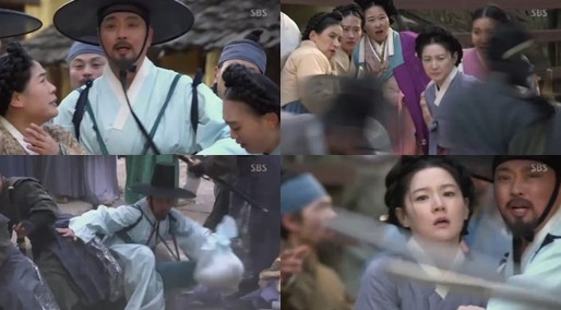 이어 이원수는 파락호들이 칼을 뽑자 깜짝 놀라며 황급히 신사임당을 데리고 자리를 피해 위기를 벗어났다.