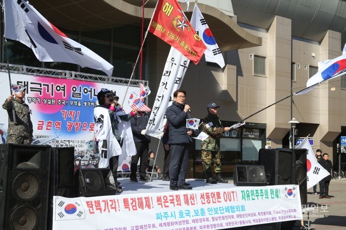 전날 ‘대통령 탄핵 기각을 위한 국민총궐기 운동본부(탄기국)’ 주최로 청계천 인근에서 열린 제15차 태극기집회엔 대선주자인 이인제 전 최고위원, 김문수 비상대책위원과 김진태 윤상현 조원진 박대출 전희경 의원 등이 참석, 탄핵 기각의 당위성을 한 목소리로 주장했다.