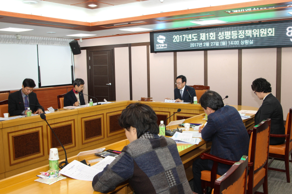 경기 의정부시는 지난 27일 상황실에서 제1회 성평등정책위원회 회의를 개최했다. 사진은 이성인 부시장 및 7명의 위원이 성평등기금 사업공모에 따라 접수된 사업에 대한 심의를 실시하는 모습.(사진제공=의정부시청)