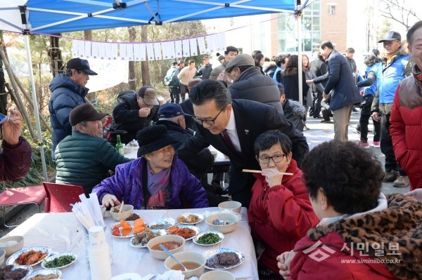 최근 인천 연수구 선학동 축제추진위원회는 행정복지센터 주차장에서 자생단체 및 지역내 경로당 노인, 주민 등 150여명이 참석한 가운데 새봄맞이 척사대회를 개최했다. 사진은 이재호 구청장이 주민들과 이야기를 나누는 모습.(사진제공=연수구청)