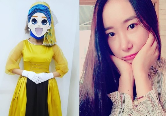 공개된 사진 속 그는 '복면가왕'에 출연했던 모습 그대로 의상을 입고 가면을 쓰고 있다. 특히 옐로우 컬러의 드레스가 눈길을 끌었다.