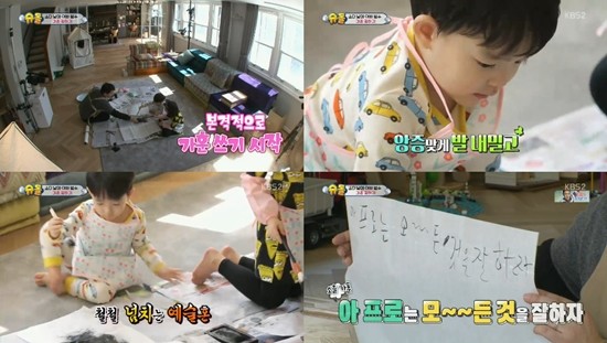 5일 오후 방송된 KBS2 예능프로그램 ‘슈퍼맨이 돌아왔다’에서는 새집에 이사가 새 가훈을 정하는 에피소드가 그려졌다.