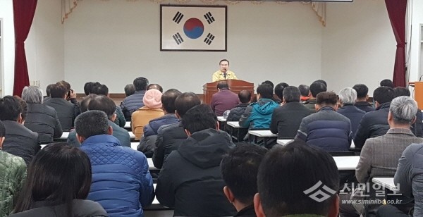 최근 경기 양주시 농업기술센터는 지난주 2017년도 농촌지도 시범사업 선정농가 80여명이 참석한 가운데 시범사업추진 성공을 위한 사전교육을 실시했다. 사진은 이성호 시장이 인사말을 하는 모습.(사진제공=양주시청)