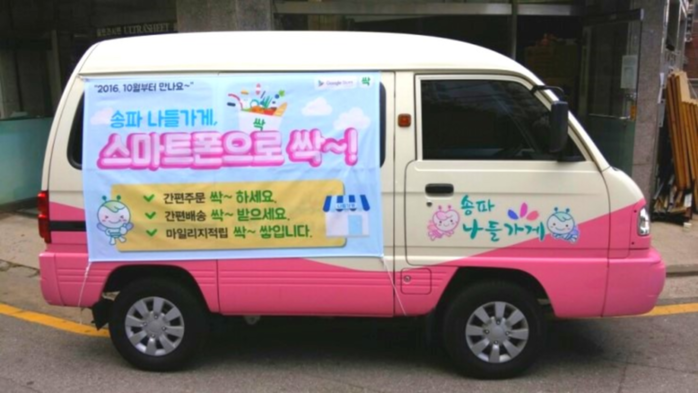 구는 온라인 쇼핑몰 거래가 급증하는 흐름에 골목슈퍼도 자연스럽게 합류할 수 있도록 전국 최초로 ‘나들차량 배송서비스’와 연동해 주문·결제·배송이 원스톱으로 가능하도록 한 모바일 앱 서비스 ‘싹’을 선보였다.