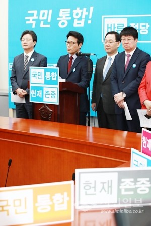 바른정당 정병국 대표가 9일 오전 국회 당대표실에서 열린 탄핵정국 비상시국 의원총회에 참석해 발언하고 있다.