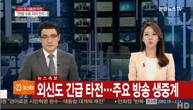 미국 CNN 방송을 비롯해 주요 방송들도 정규 뉴스를 진행하다가 긴급 뉴스로 박 전 대통령의 탄핵 소식을 다뤘다.