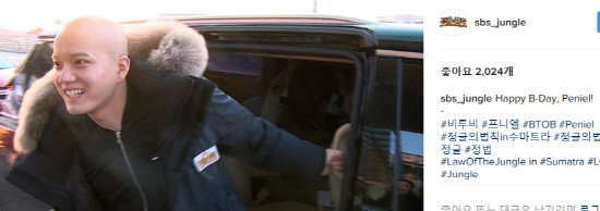 SBS 예능프로그램 ‘정글의 법칙’ 공식 인스타그램에는 ‘Happy B-Day, Peniel!’이라는 샂ㄴ이 10일 공개됐다.