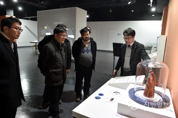 김성환 노원구청장은 지난 9일 오전 11시 오는 5월 개관을 앞둔 하계동 소재 서울시립과학관에 현장방문 했다. 사진은 김 구청장(왼쪽 두번째)과 과학관 관계자 등이 과학관 내부 시설을 둘러보고 있는 모습.(사진제공=노원구청)