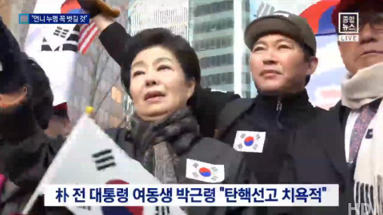 11일 TV조선 ‘뉴스판’에서는 박근령씨와 박지만 씨 신동욱 공화당 총재 등의 상황에 대해 전했다. 박근령 씨는 “이완용처럼 팔아먹은 것도 아니고 왜 탄핵이 되나”라며 “재심을 청구해 언니의 누명을 벗길 것이다”라고 말했다.