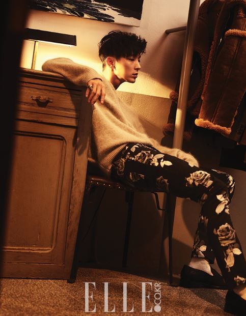 화보 속 이준기는 의자에 앉아 날렵한 턱선과 오똑한 콧날을 내보이며 시크한 표정으로 바닥을 바라보고 있다.