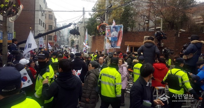 12일 오후 박근혜 전 대통령의 서울 삼성동 사저가 지지자들로 붐비고 있다.