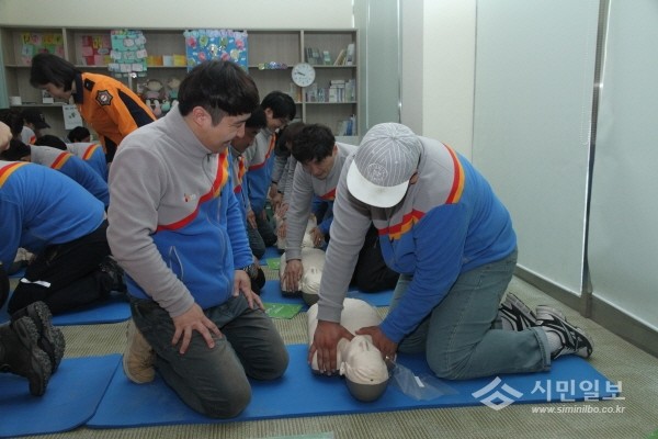 은평소방서, CJ대한통운 택배기사들에 심폐소생술 교육