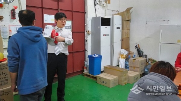 영등포소방서는 지난 13일 오후 영중로 소재 장애인 보호시설 행복한 나무를 방문해 안전의식 고취을 위한 소방안전교육을 실시했다. 사진은 소방서 관계자가 화재발생시 행동요령에 대해 설명하는 모습.(사진제공=영등포소방서)