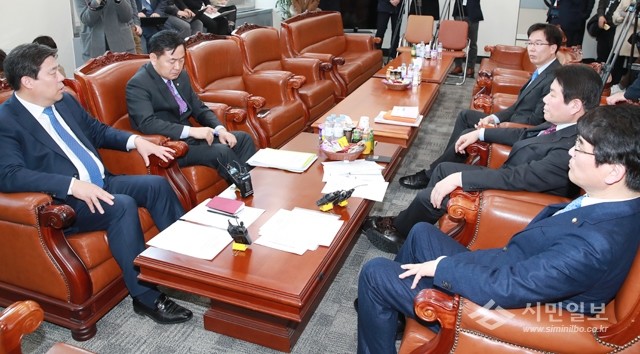 14일 오전 국회 운영위원장실에서 열린 원내교섭단체 4당 원내수석부대표 회동에서 각당 수석부대표들이 논의하고 있다. 오른쪽 두번째부터 시계방향으로 바른정당 정양석, 더불어민주당 박완주, 자유한국당 김선동, 국민의당 김관영 원내수석부대표.