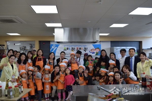 | ▲ '쿠킹클래스' 참가자들이 어린이들과 한데 모여 기념촬영을 하고 있는 모습.(사진제공=김포시청) | ||