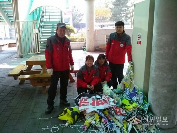 최근 경기 안산시 초지동 자율방재단은 봄철을 맞아 쾌적한 초지동을 만들기 위해 불법현수막 제거 등 지역 환경정비를 실시했다. 사진은 참여자들이 기념촬영을 하는 모습.(사진제공=안산시청)