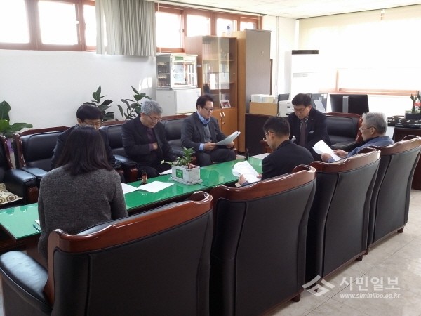 경기 여주시 대신면은 지난 14일 면장실에서 지역내 학교장 5인이 참석한 가운데 인구 늘리기 간담회를 개최했다. 사진은 간담회 참여자들이 회의를 진행 중인 모습.(사진제공=여주시청)